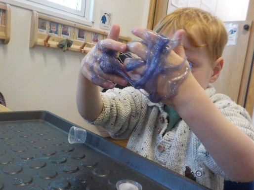 We have been collaborating and spending time with our key groups, making the gloop and playdough for everyone to use. We have been following our playdough recipe and mixing water and cornflour to make gloop.