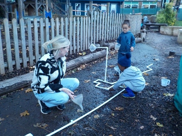 Children have been repeating, rehearsing and revisiting. Testing out, collaborating and problem-solving as they build ramps for balls and cars using guttering and pipes on our big hill!