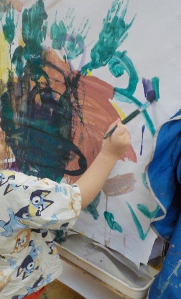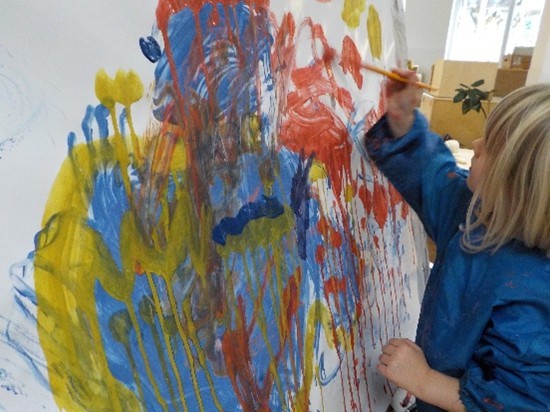 Children have been experiencing the movement of brushes, the textures of paint, and the different surfaces they can cover!