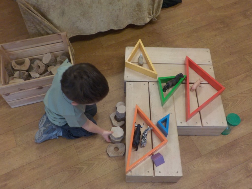With the blocks and rainbow triangles, the children made links in their learning through creating a pizza shop asking questions like “what do you want on your pizza?” and “that’s £5 please”!