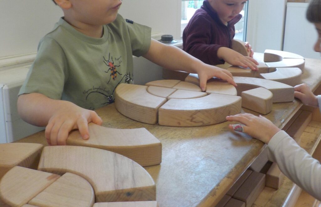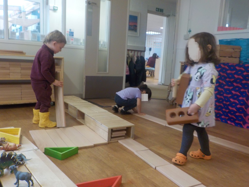 Spending time in the studio using the loose parts and wooden bricks to support collaborative play.
