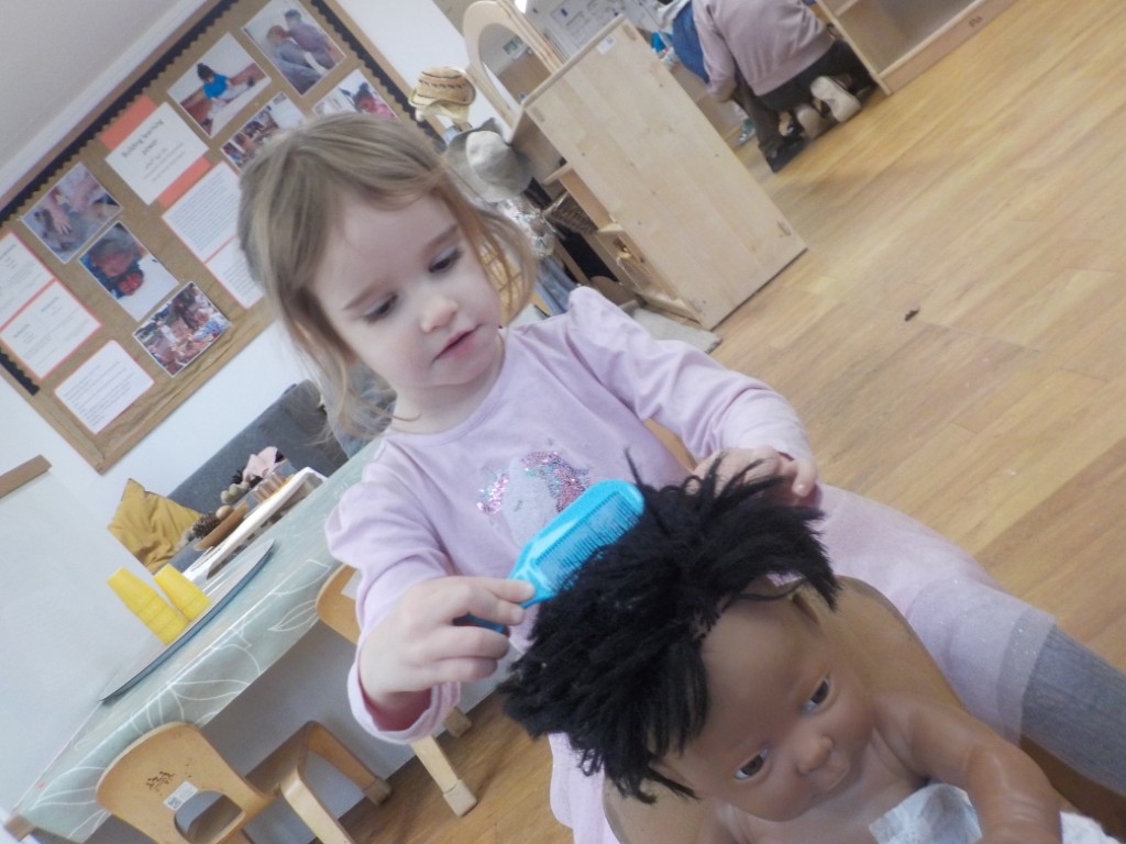 This has then led to lots of interest in exploring the dolls caring for them as they feed, dress, wash and read stories to the dolls, making links in their learning and playing with what they know.