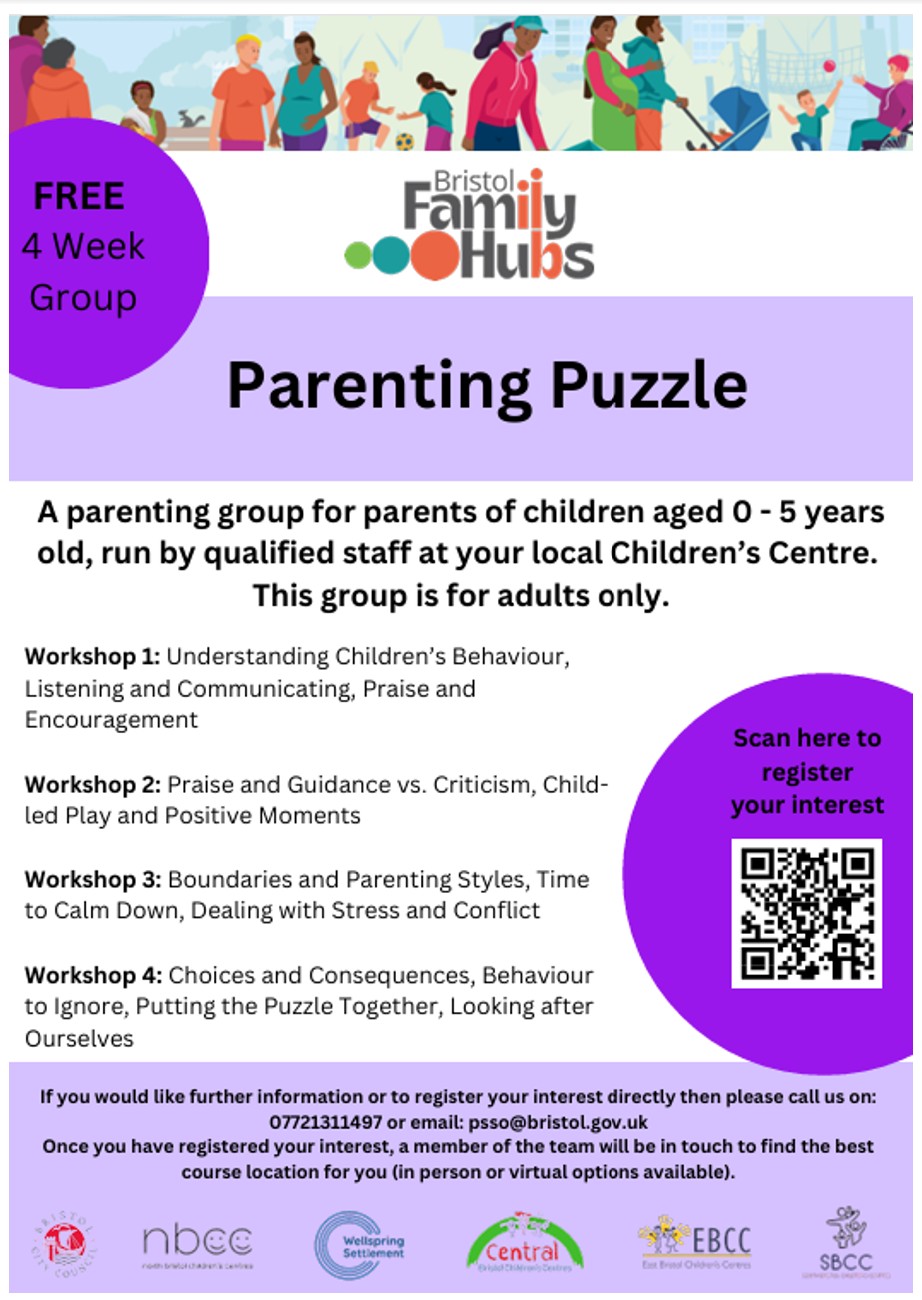 Parenting Puzzle is an empowering parenting support programme. It is for all families, celebrating the joy of parenting and recognising the challenges of understanding children’s emotions and behaviour. Our Family Hub team will be facilitating this group in May 2026. Please talk to your child’s keyperson to “sign up” or simply apply using the QR code attached below