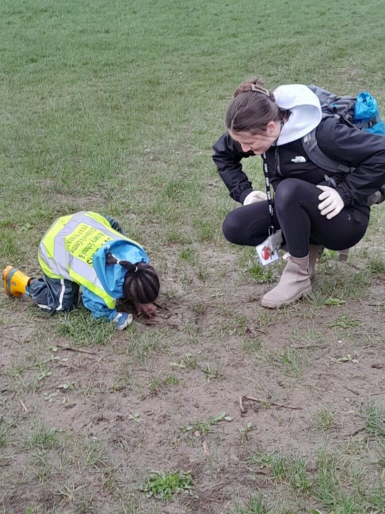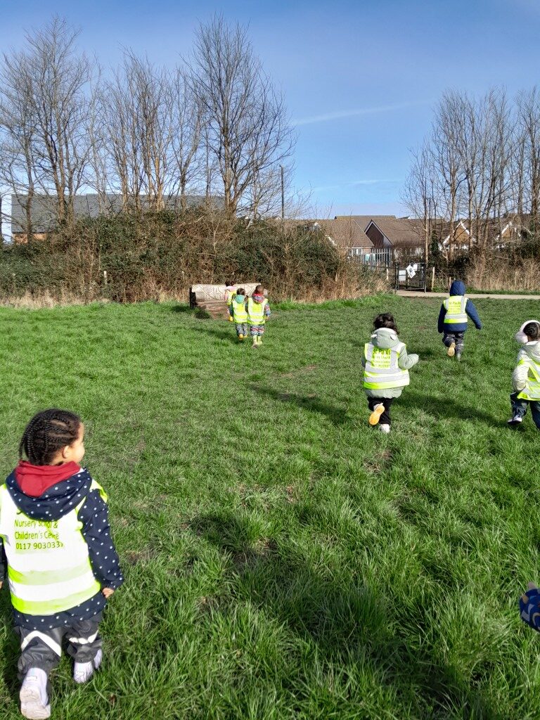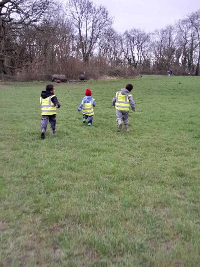 Noticing changes in weather and experiencing the joy of running the wind across a field, hearing raindrops under the canopy of the trees, enjoying the sunshine as they notice signs of Spring.