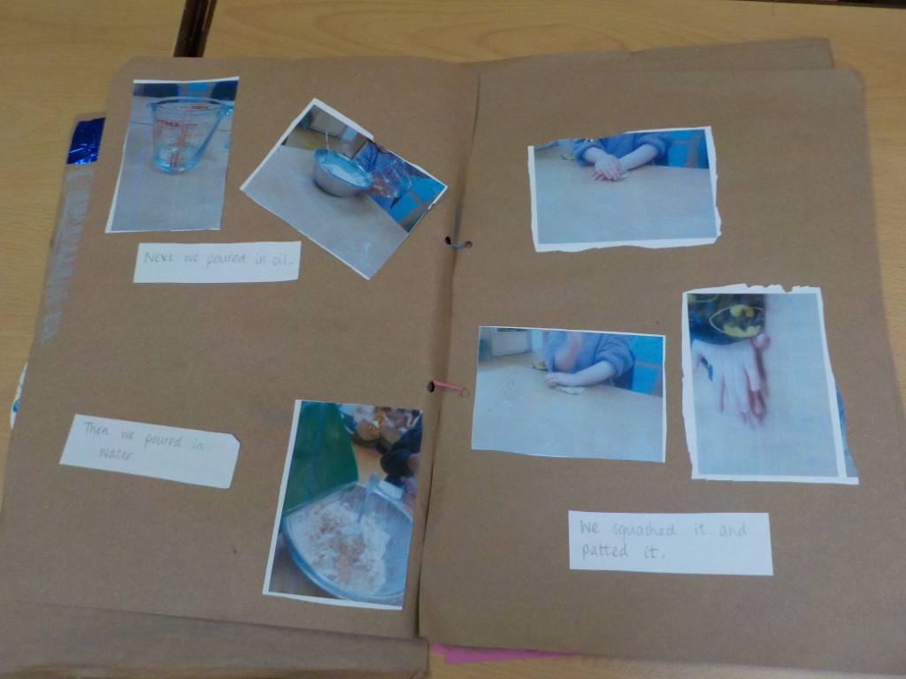 The children have been making marks to show the illustrations and words in their stories…sometimes asking adults to scribe for them as we share the pen between more experienced and less experienced writers.