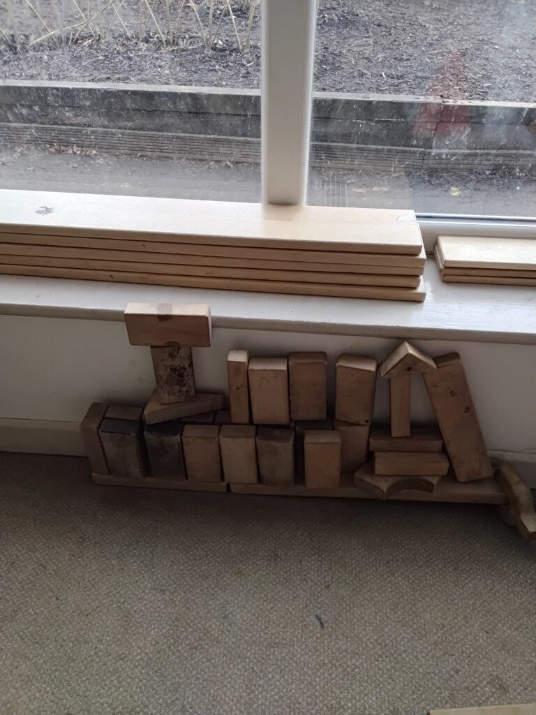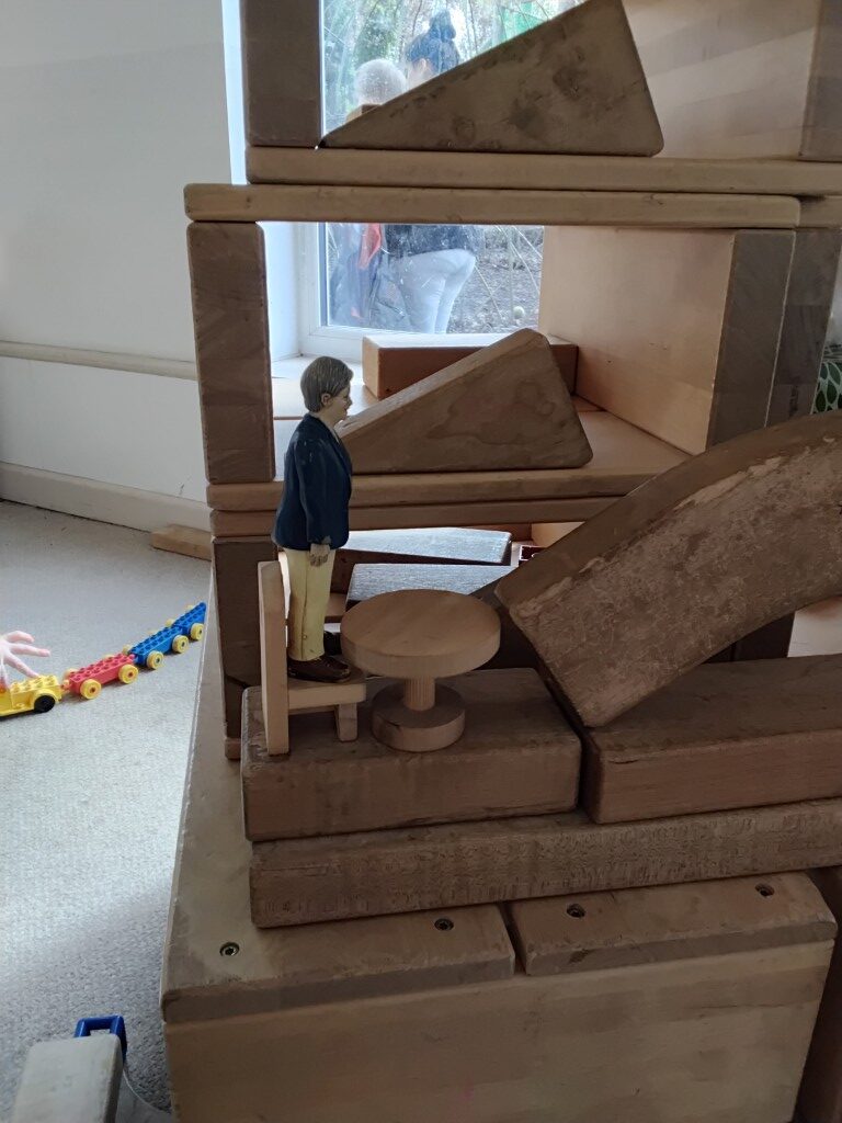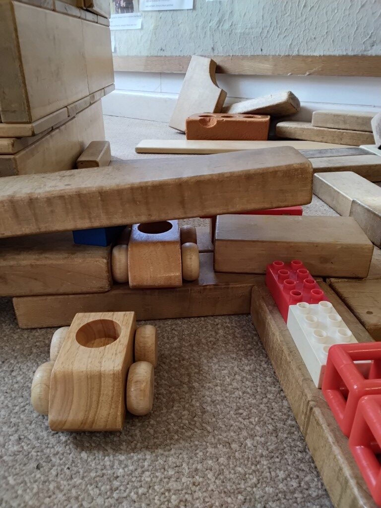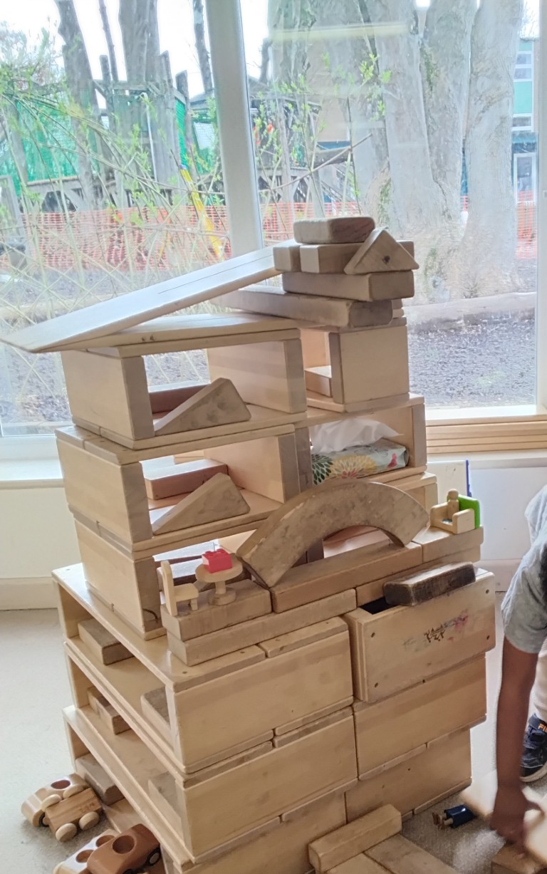 The children have been busy acting as designers and engineers, using blocks to create aeroplanes, cars, and homes.