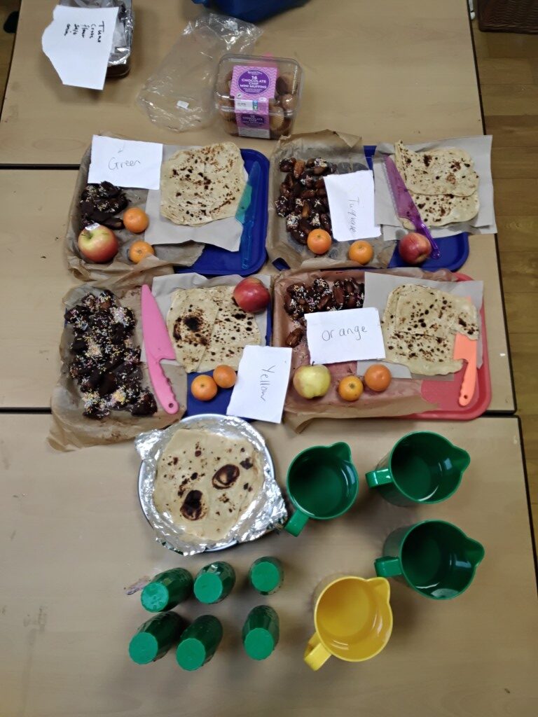 We then came together to enjoy traditional foods, including dates covered in chocolate and sprinkles, chapatis made by the children, and delicious samosas kindly brought in by families—thank you!