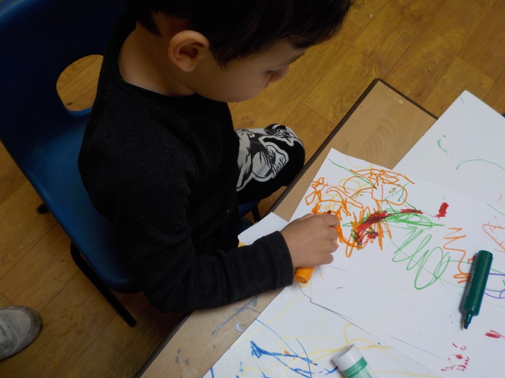 Many children have also been showing a growing interest in mark making on both large and small scales.